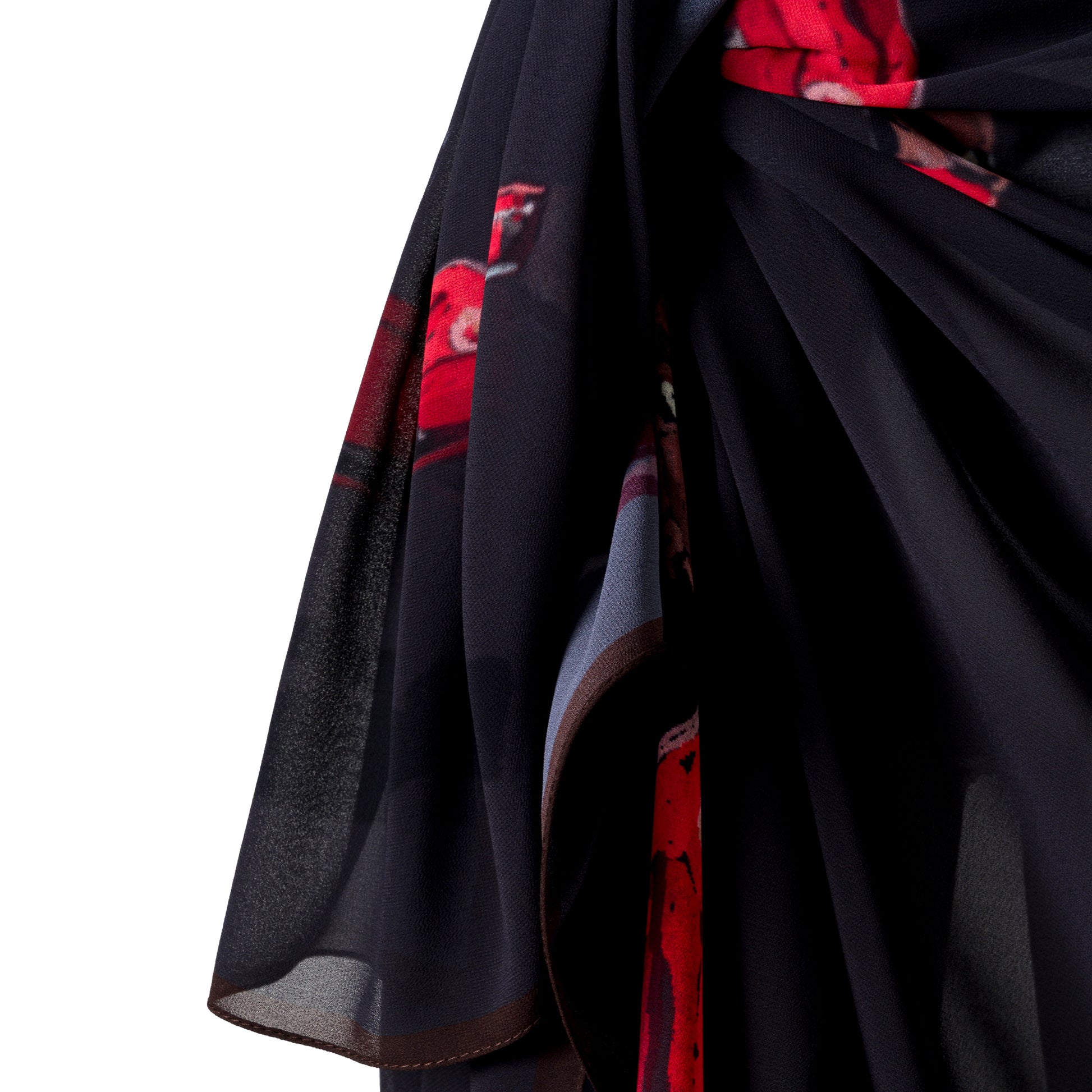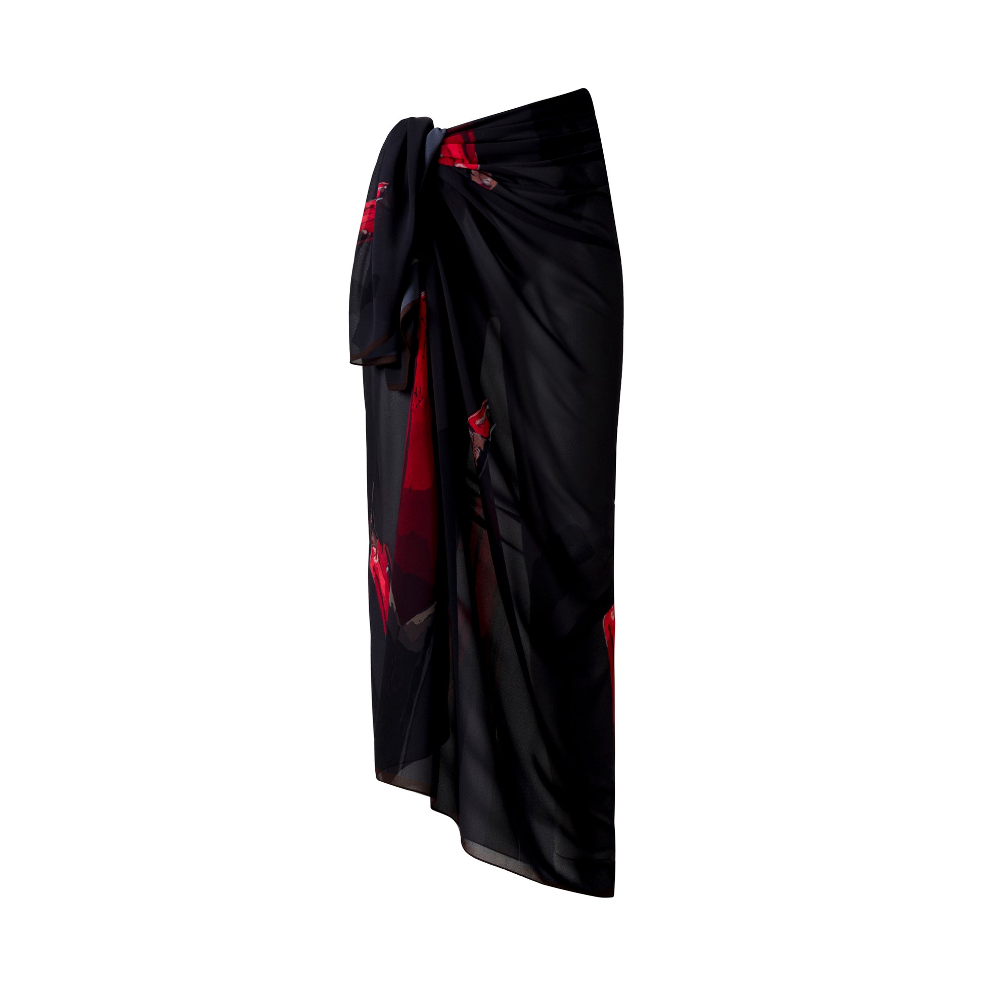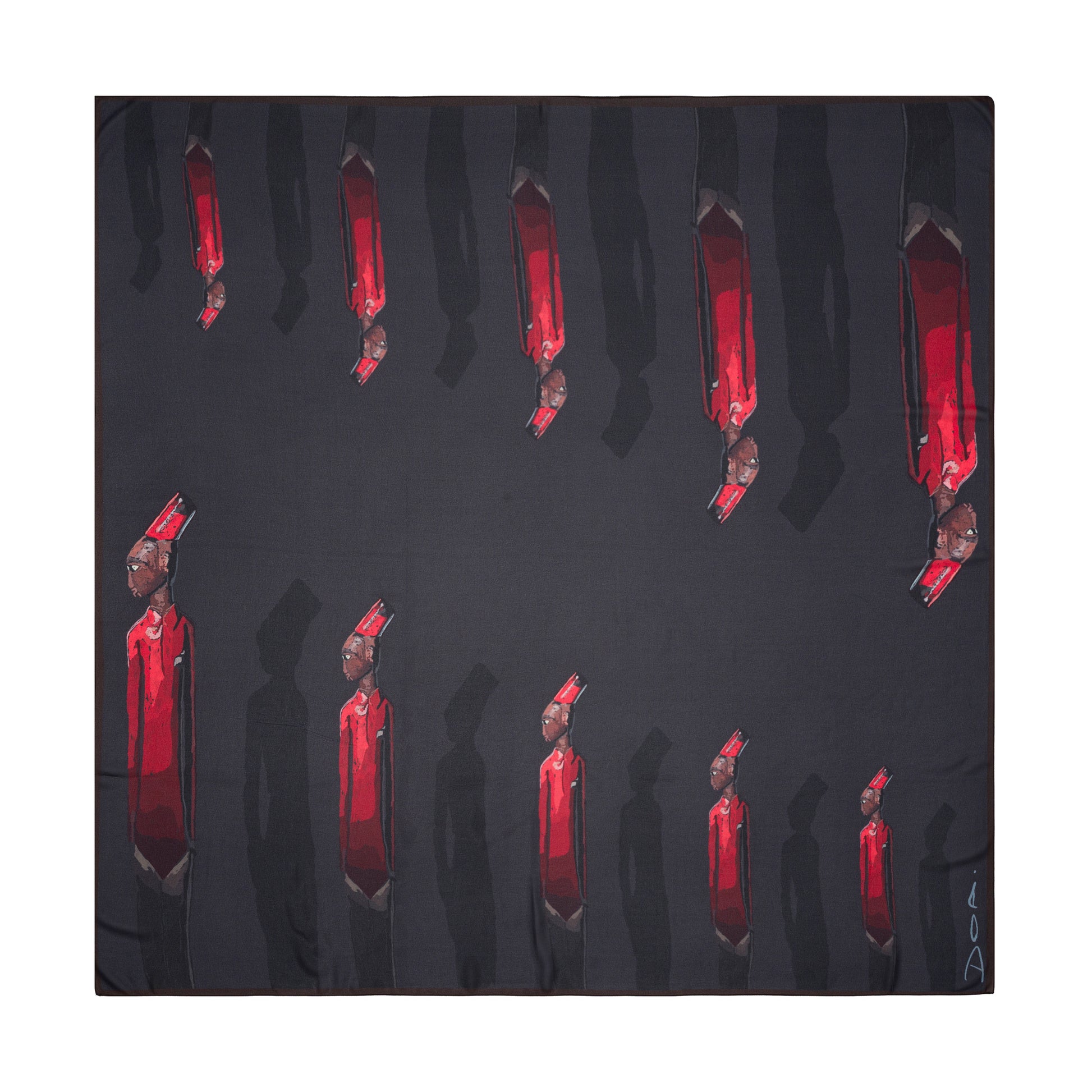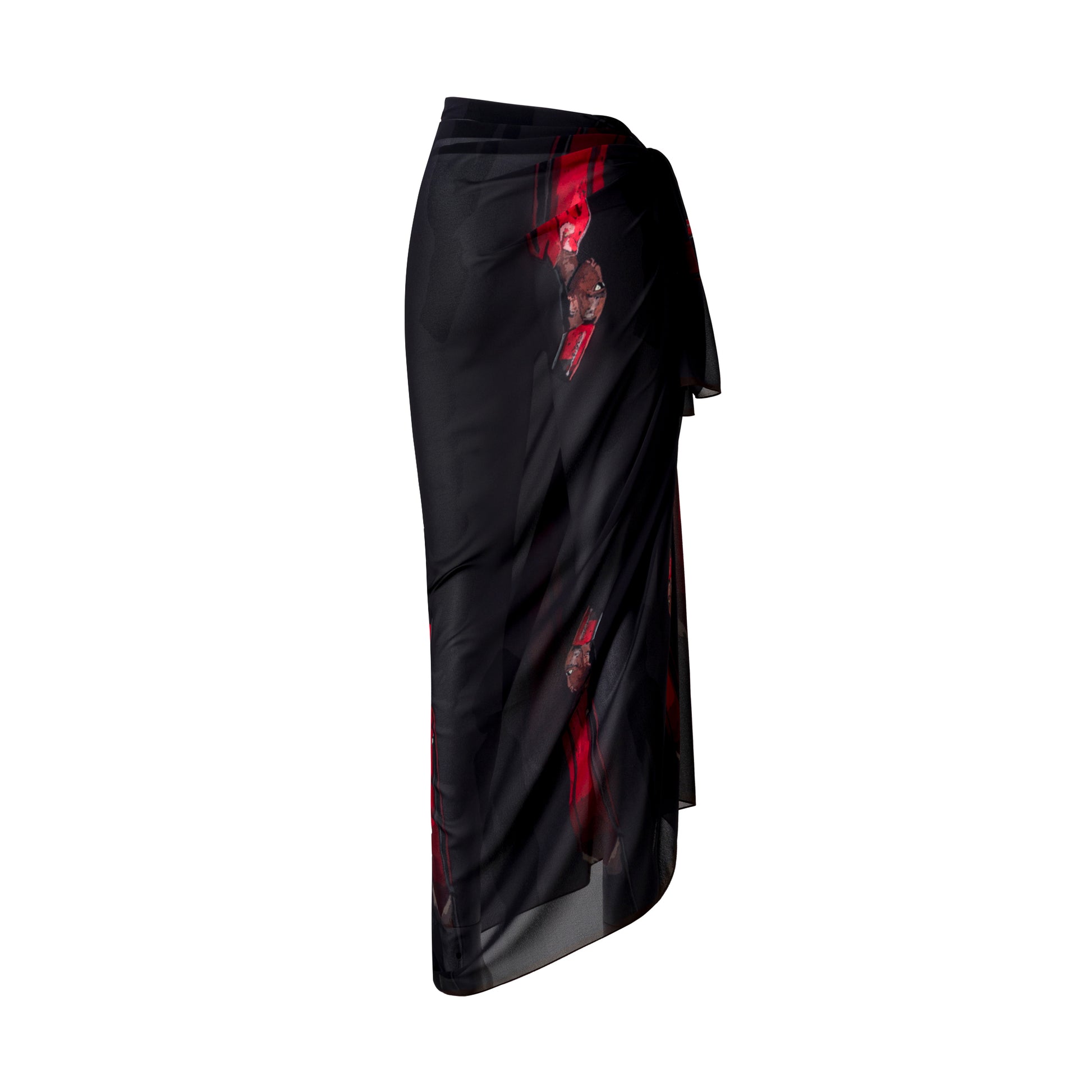 Maple features striking red figures against a dark background, combining elegance with cultural depth.