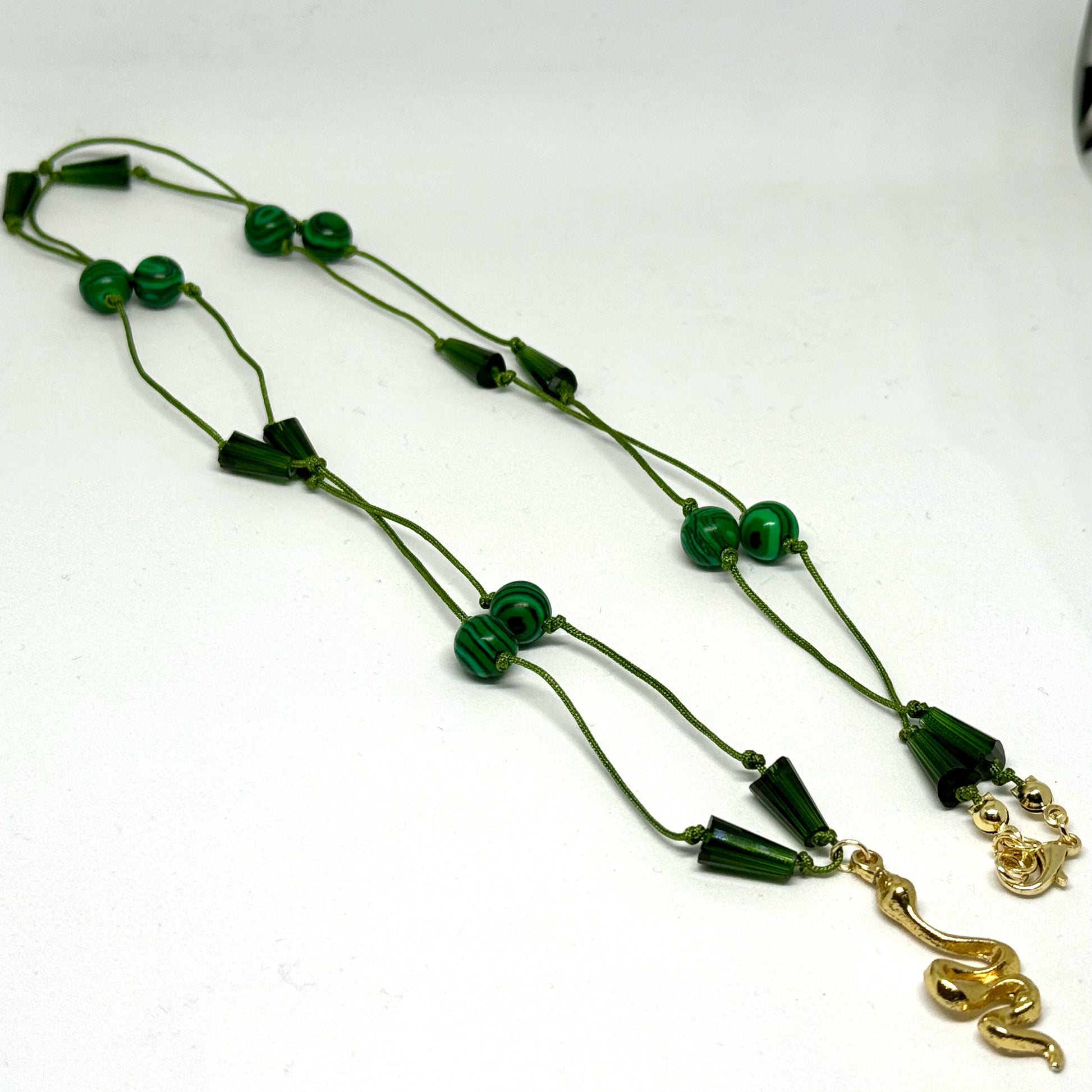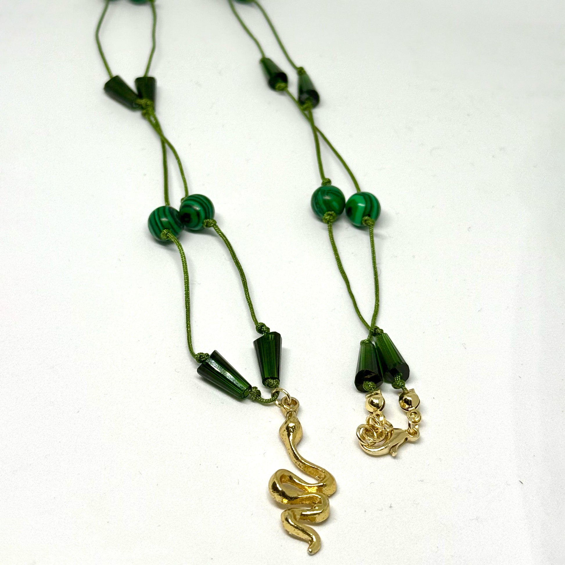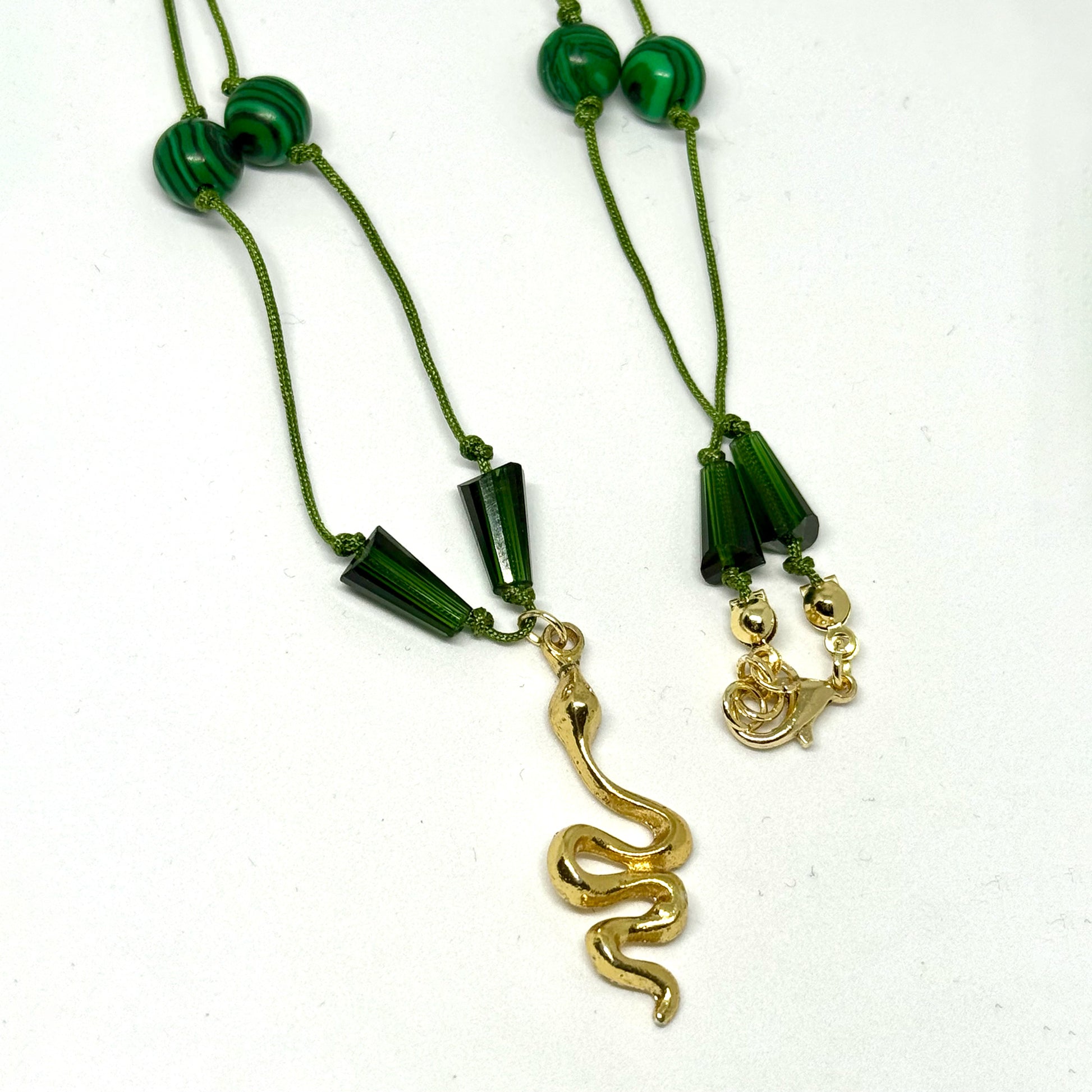 Jade stones · Brass gold-plated snake pendant