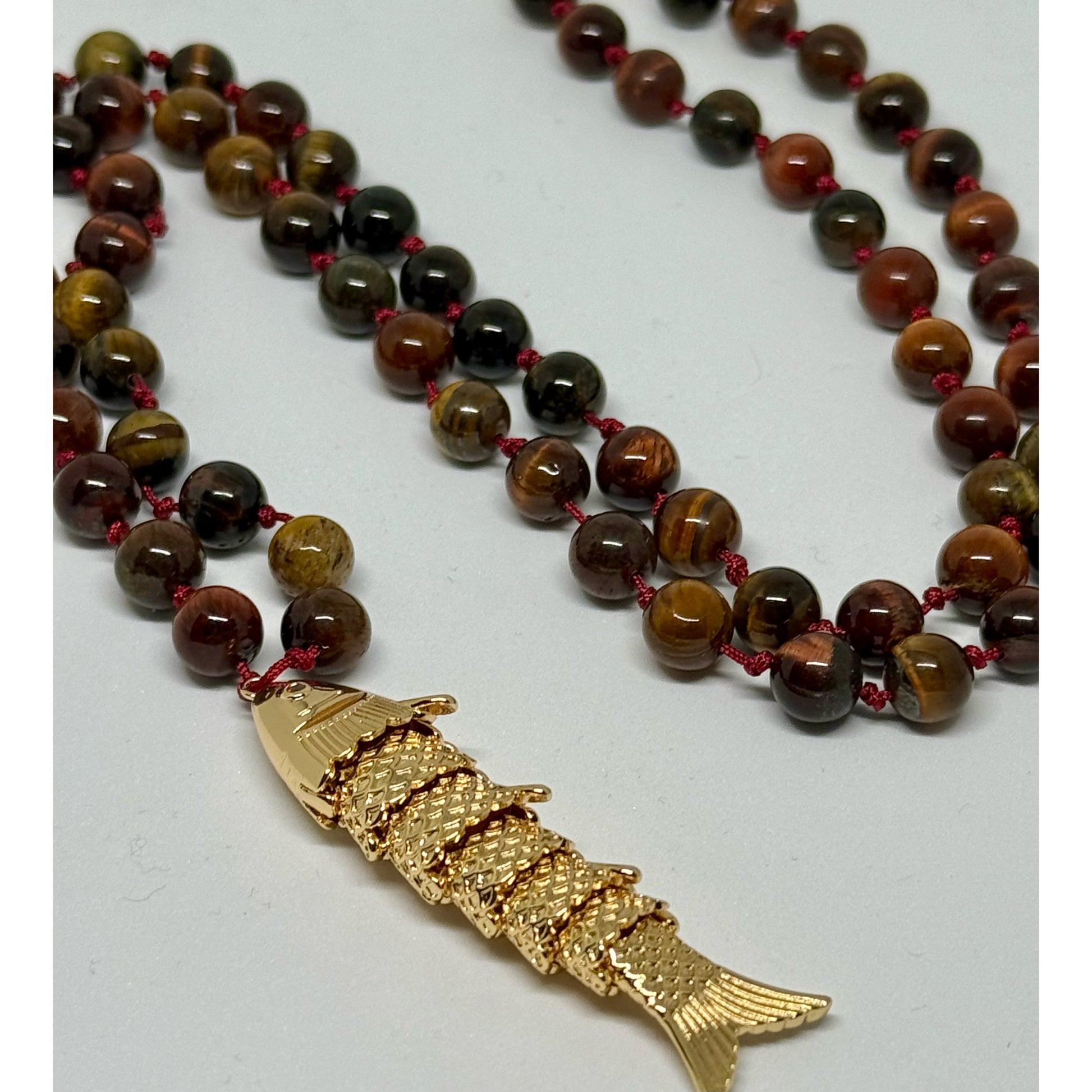 Tiger eye stones · Gold-plated koi fish pendant